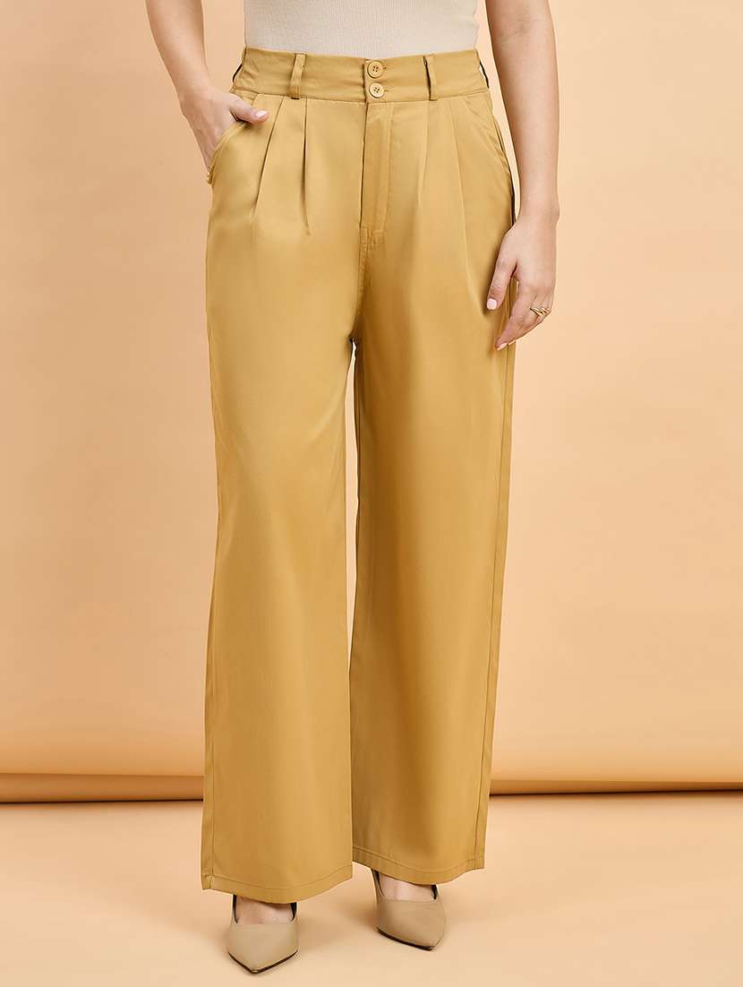 Upgrade your style with these cotton twill trousers for women. Crafted from non-stretchable fabric, they offer a structured, elegant fit. Featuring a high-waist design and stylish button details, these pants are ideal for both casual and semi-formal occasions. Experience comfort, durability, and modern flair with every wear. The model (height 5'8) is wearing a size 28.