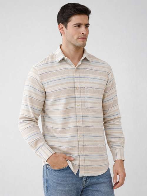 - Be a head turner by wearing this casual shirt from Indian Needle and grab it in beige colour.