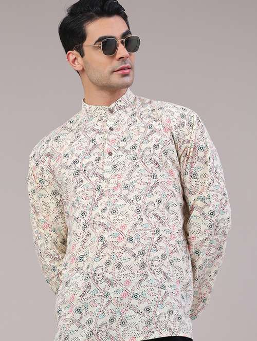 - » men printed mandarin neck short kurta