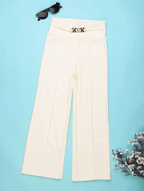 - » girls solid high rise pleated trouser