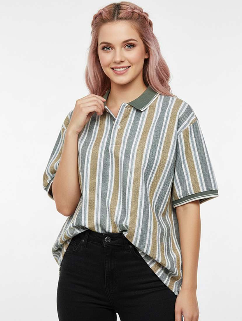 women printed short sleeve oversized polo t-shirt
