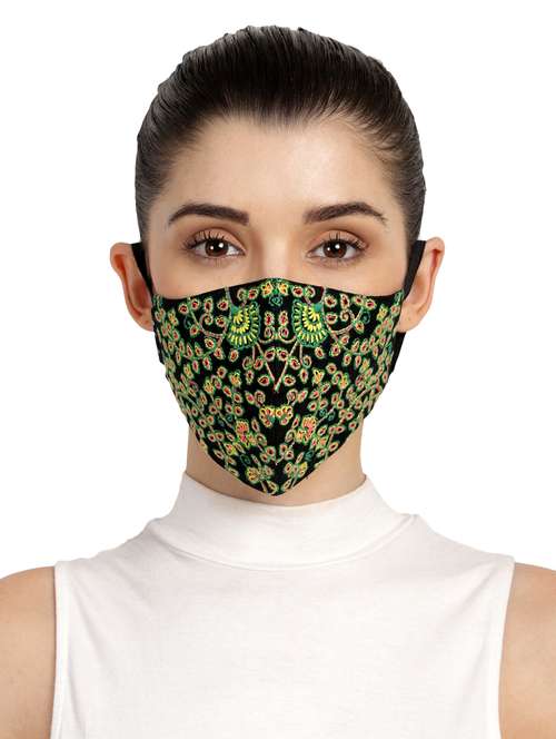 Anekaant 3-Ply Black & Multi Fluorescent Cotton Embroidered Fabric Fashion Mask