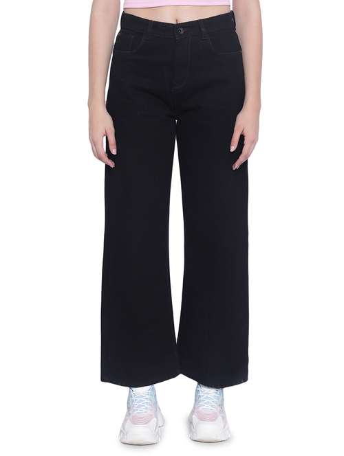 - Choose from the trendy assortment of wide leg jeans in a variety of black colors and timeless designs to complete your clothing essential list.