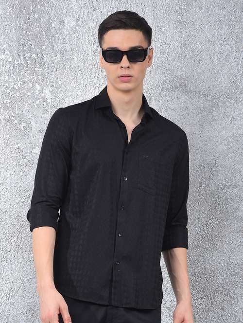 - Be a head turner by wearing this casual shirt from CRIMSOUNE CLUB and grab it in black colour.