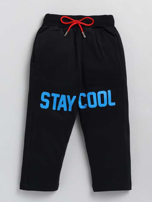 boys black typographic regular track pant
