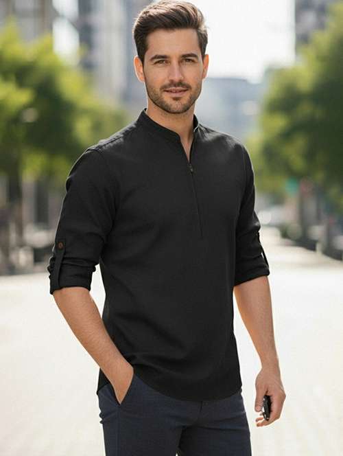 - » men solid mandarin neck short kurta