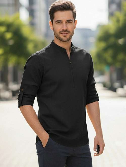 - » men solid mandarin neck short kurta