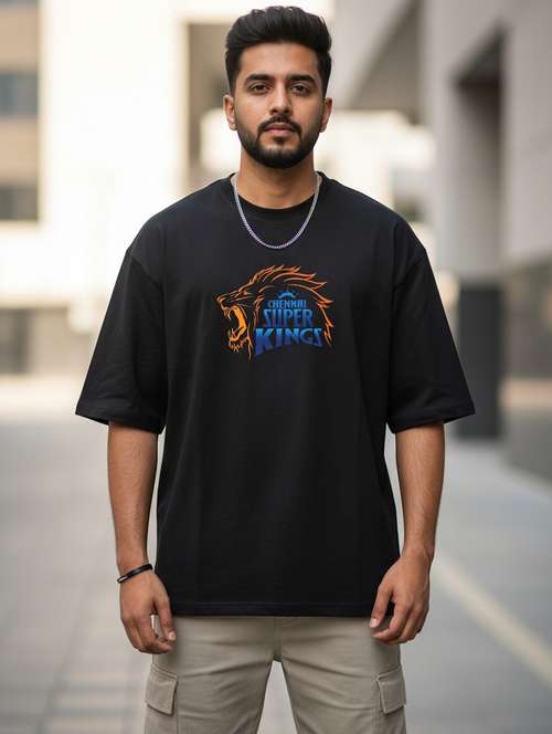 men chennai super king printed short sleeve oversized t-shirt