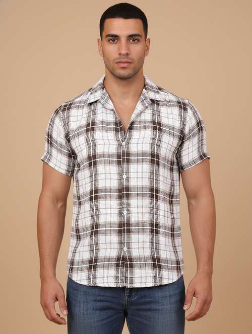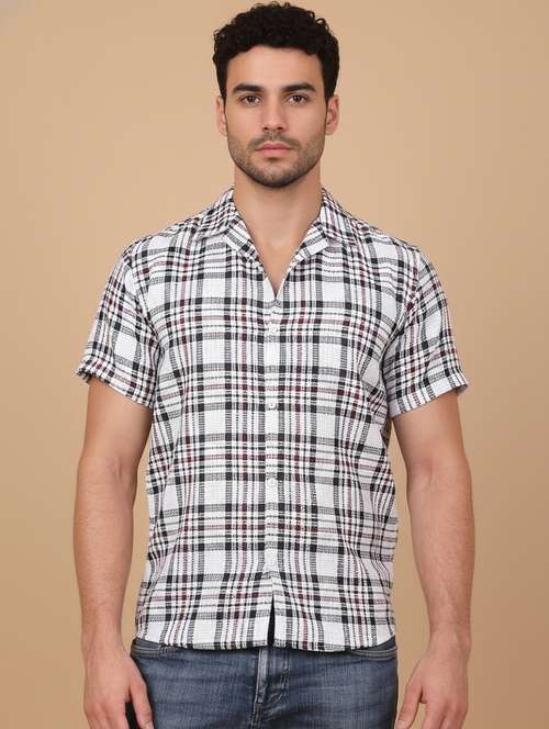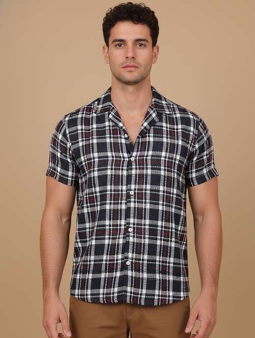 men checkered short sleeve regular fit casual shirt
