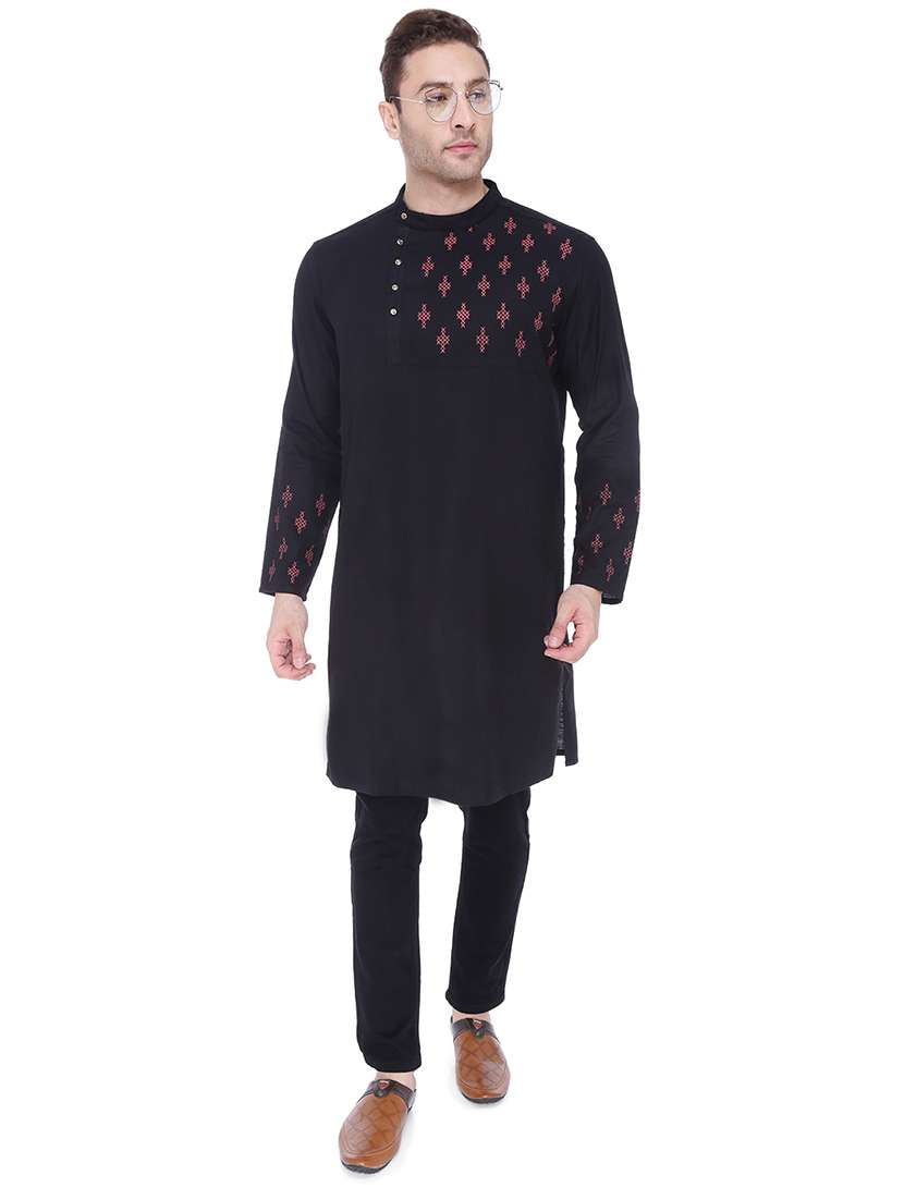 men embroidered mandarin neck long kurta  - 22453727 -  Standard Image - 3 men embroidered mandarin neck long kurta  - 22453727 -  Zoom Image - 3