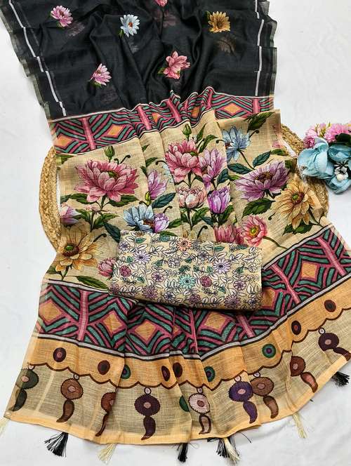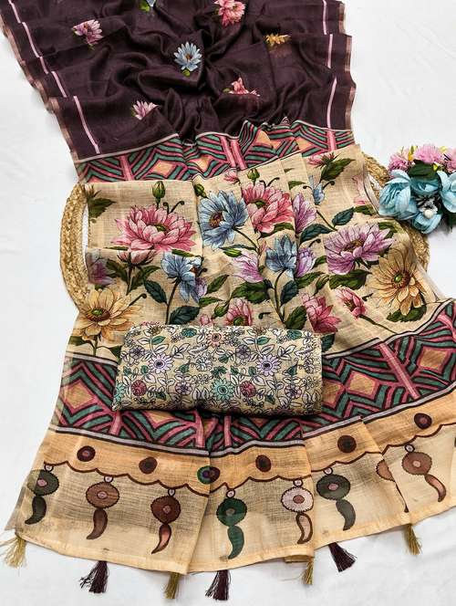 - » women printed casual wear saree with blouse