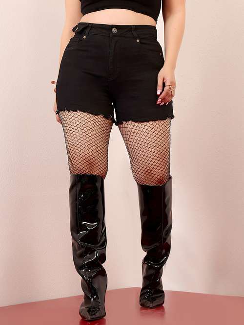 women solid high rise denim short