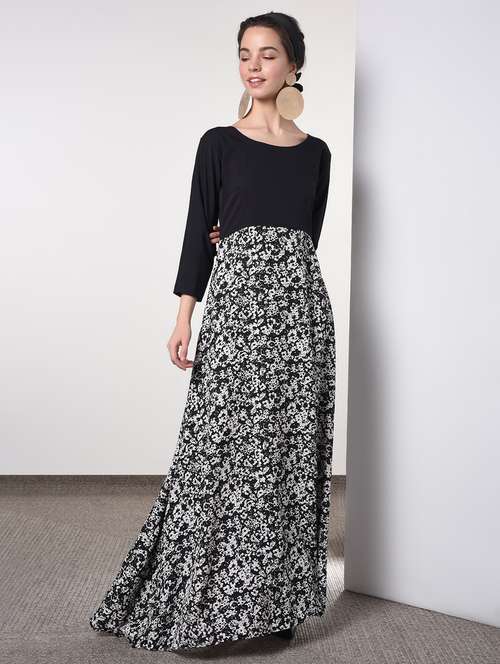 - » round neck printed maxi dress