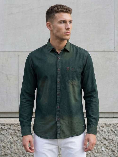 - » men solid long sleeve regular fit denim shirt