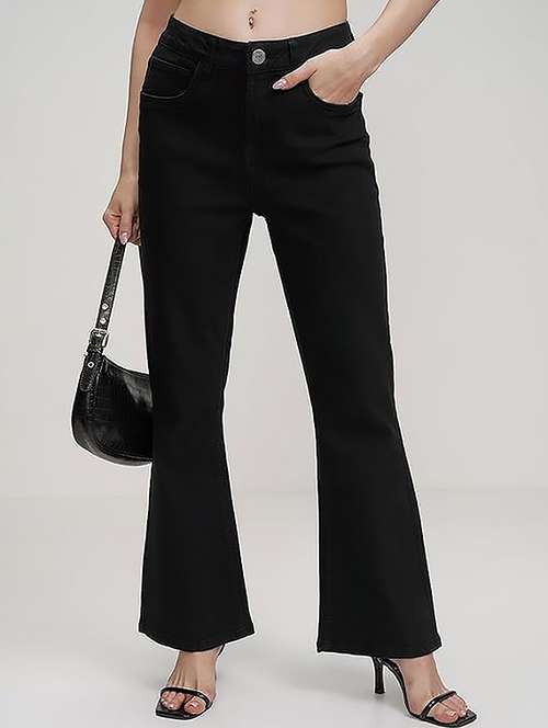 - Choose from the trendy assortment of bootcut jeans in a variety of black colors and timeless designs to complete your clothing essential list.