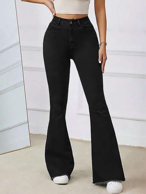 - » women plain high rise bootcut jeans