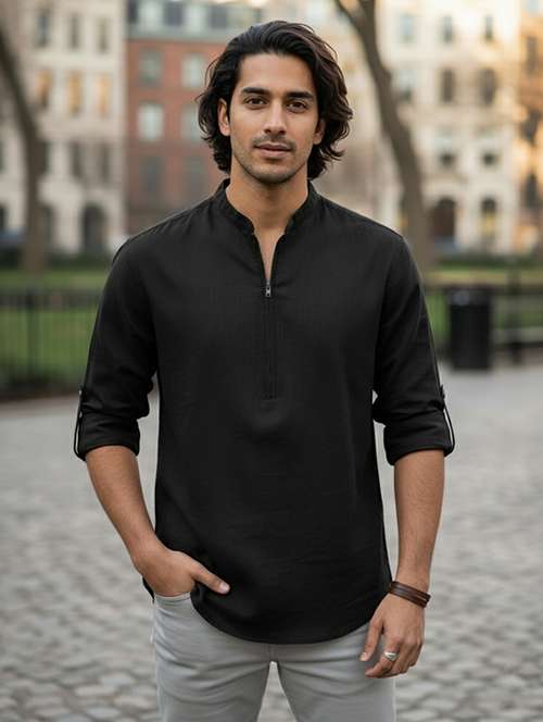 men mandarin neck solid short kurta