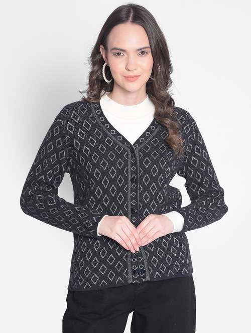 Introducing the Crimsoune Club Women's Cardigan, featuring the brand's unique Printed pattern and a trendy Black color Stay cozy and stylish with this must-have addition to your winter wardrobe.