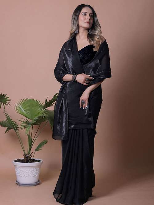 Explore the collection of beautifully designed sarees Saree Fabric : Organza & Blouse Fabric : Bhagalpuri Silk, Saree Work :Dyed, Sequin Embroidery, Scollped Border & Blouse Work : Dyed, Sequin Embroidery