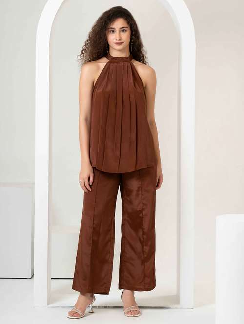 women solid top and trouser co-ord set