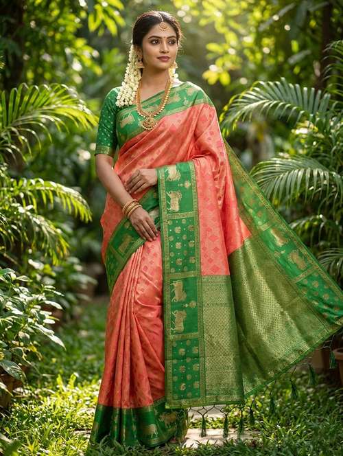 women self design kanjivaram saree with blouse