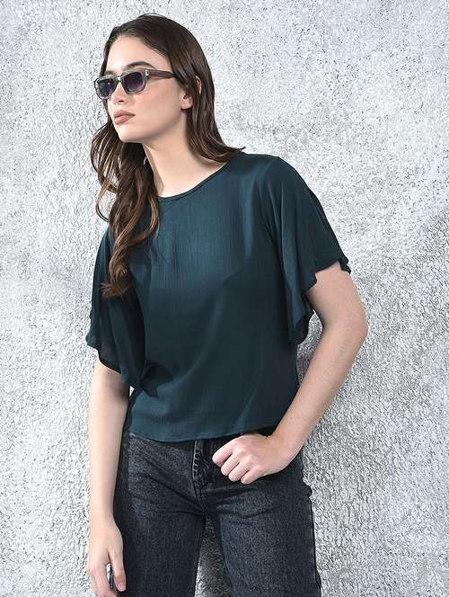 - Opt for this top made up of viscose material and get it in a varied neck design.