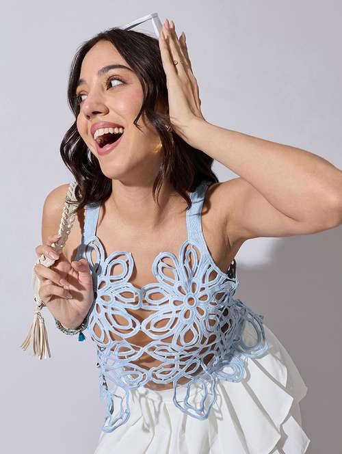SHOWOFFFF Edition Women’s Abstract Crochet Blue Sleeveless Top