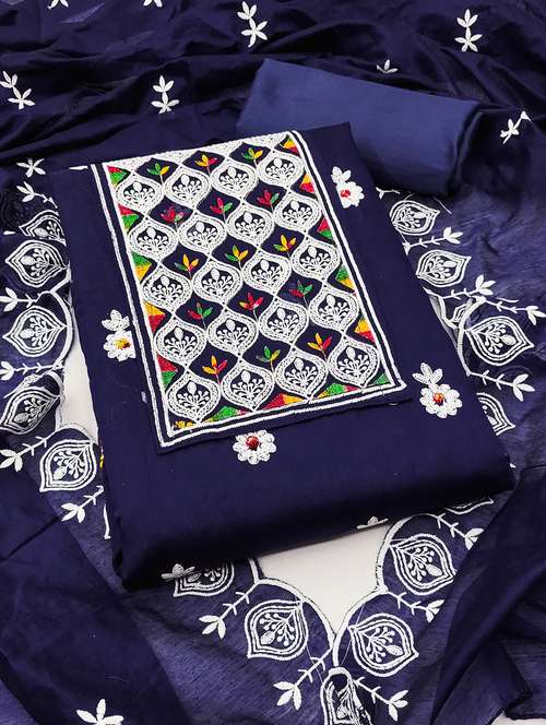 • Look ultra gorgeous in unstitched suits from Manvaa and grab these beautiful suits in blue colour.