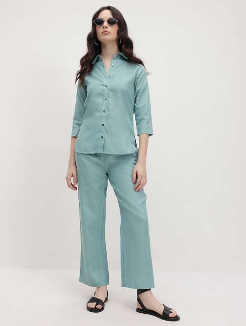 women solid shirt and trouser co-ord set - 22178440 -  Standard Image - 1 women solid shirt and trouser co-ord set - 22178440 -  Zoom Image - 1