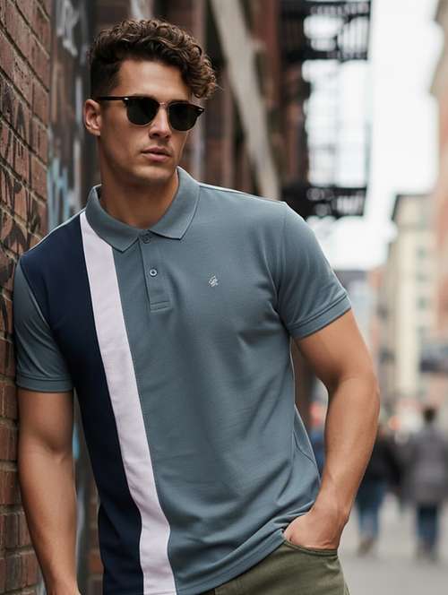 - » men color block short sleeve regular fit polo t-shirt