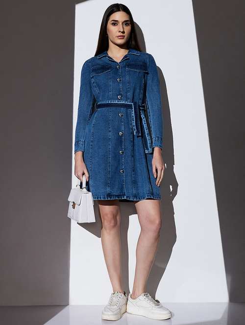 - Dress up in a soothing pattern and don this dress made of denim material.