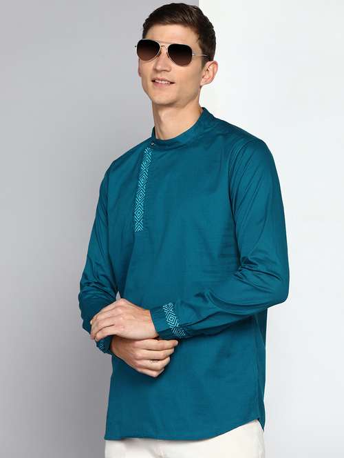 Elevate your festive wardrobe with this Sky Blue Cotton Twill Angrakha Short Kurta, designed for men who appreciate understated elegance with a modern twist. Inspired by traditional Angrakha silhouettes, this kurta blends heritage craftsmanship with contemporary tailoring. The calming sky blue hue makes it a versatile choice for daytime celebrations, festive gatherings, and summer events, offering a fresh and polished look. Pair it with light-toned bottoms for a clean ethnic vibe or dress it down with denim for a smart fusion style. Minimal, modern, and effortlessly festive—just the way style should be.