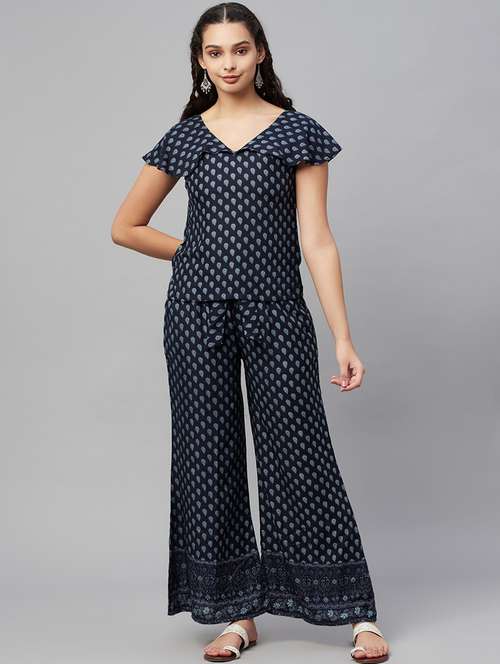 - » blue cotton top pants set