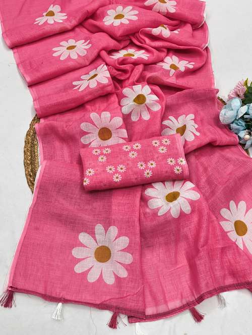 women printed casual wear saree with blouse