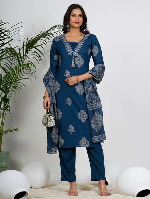 - Find gorgeous sets of ethnic wears in trending designs in blue colors suitable for casual wear of occasions.