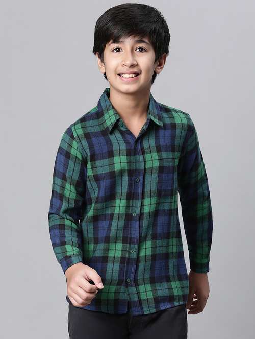 - » blue & green checked casual cotton shirt
