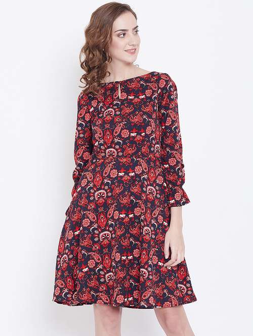 - Dress up in a soothing pattern and don this dress made of polyester material.