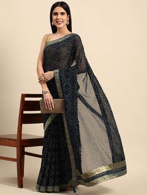 - » women's foil print blue colored saree