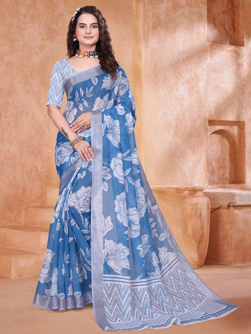 Color : Blue, Made from high-quality Linen Fabric Printed Saree, giving the saree a stunning look and feel.If you're looking for a beautiful saree to wear to a special occasion, this women's Linen Printed saree is sure to impress. With a length of 5.50 meters and an additional 0.80 meters of Linen unstitched blouse material.this saree is perfect for weddings, parties, and other special occasions.Order now and make a fashion statement with this beautiful saree.