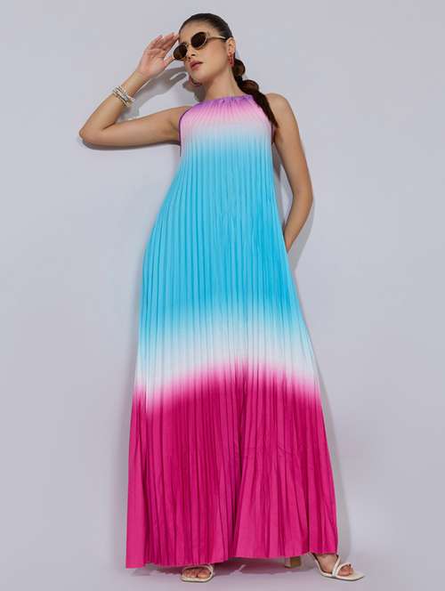 SHOWOFFFF Edition Women's Ombre Pleated Blue Maxi Dress