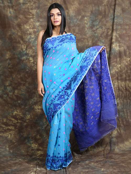 women's self design blue colored saree - 19968676 - Very Small Image - 1