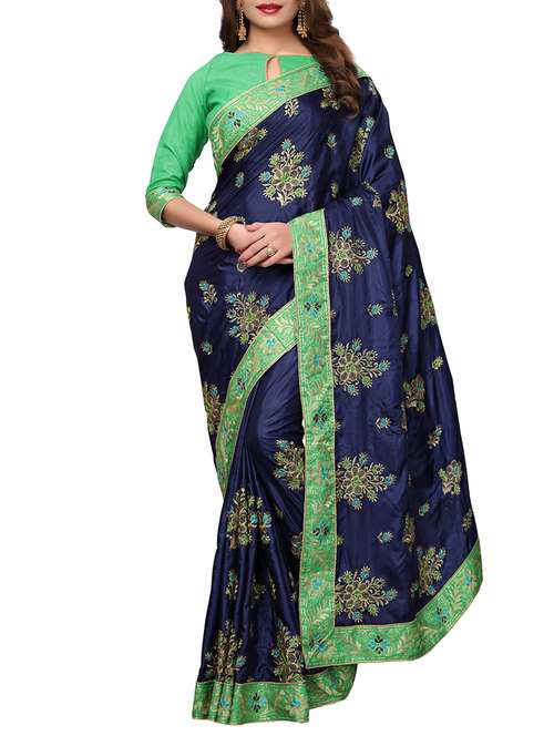 contrast border floral embroidered saree with blouse - 15753270 - Very Small Image - 1