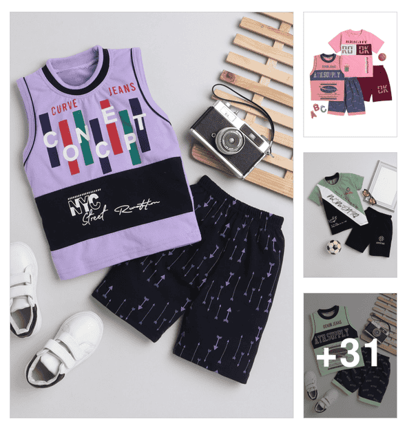 boys round neck printed shorts set