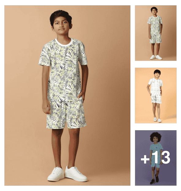 boys round neck printed shorts set