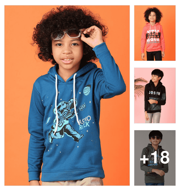 boys round neck graphic hooded sweatshirt