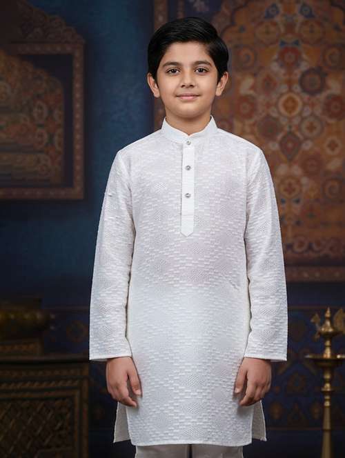 boys embroidered long sleeve kurta set