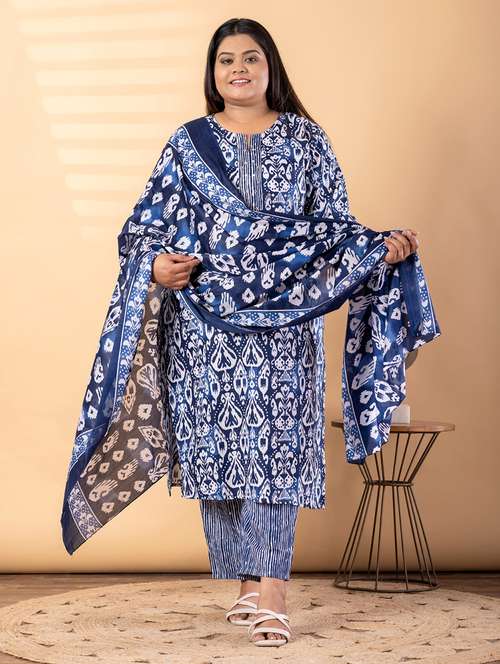 women plus size three quarter sleeve kurta pant with dupatta set