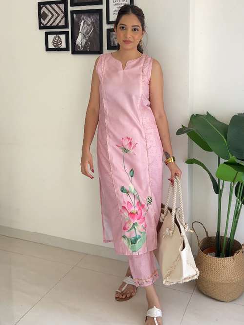 women floral printed sleeveless kurta pant set