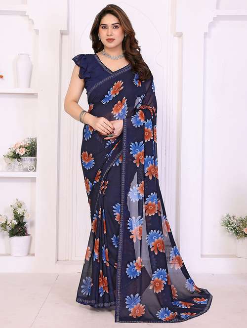 women printed casual wear saree with blouse