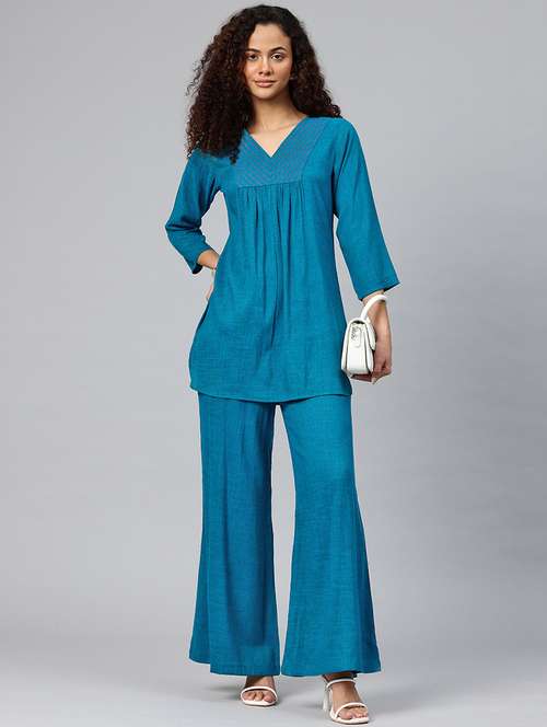 women solid top and palazzo co-ord set